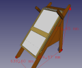 Une tige de métal rond de ~3 mm, coudée à 90° de part et d’autre, sera mise dans chacun des trous (pied + réflecteur) et permettra de régler l’angle du réflecteur selon la position du soleil.