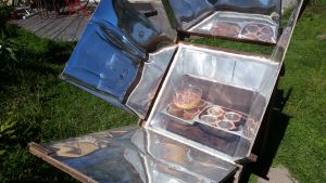Un four solaire de type boîte avec uniquement une vitre peut monter péniblement autour de 100 °C, et souvent en dessous lorsque les conditions ne sont pas idéales.