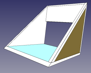 Puis on ajoute des supports (ici en vert) pour maintenir les réflecteurs gauche et droit à 107° de la vitre, avec des chutes de panneaux par exemple :